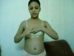 Young Pakistani housewife Nazia from Karachi in red sari stripping naked for sex with her man.