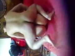 Young Pakistani housewife Nazia from Karachi in red sari stripping naked for sex with her man.